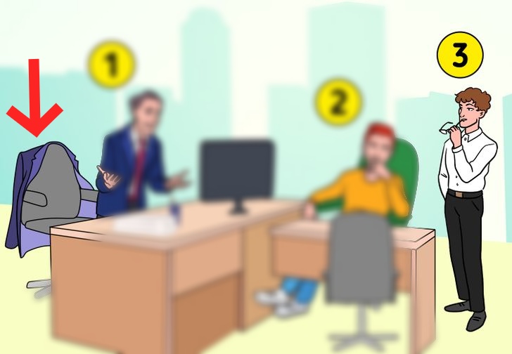 Obaja zamestnanci sa navyše pozerajú na zamestnanca číslo 3. Zamestnanec číslo 1 vysvetľuje, zatiaľ čo zamestnanec číslo 2 čaká na odpoveď šéfa. Všetky tieto detaily ťa mali doviesť k záveru, že zamestnanec číslo 3 je šéf.
