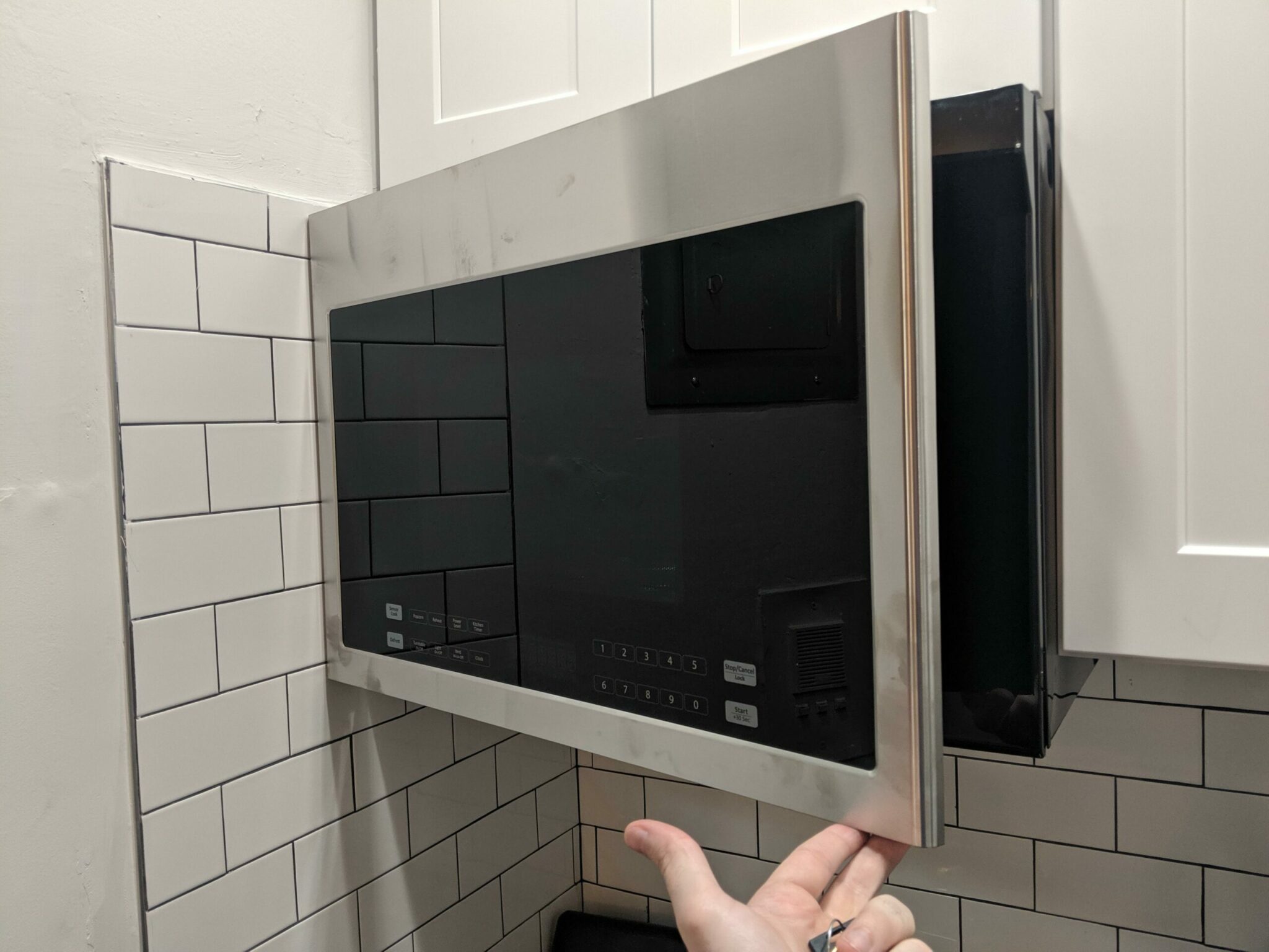“Domovník zavesil mikrovlnnú rúru, takto sa otvára, kým narazí do steny.”