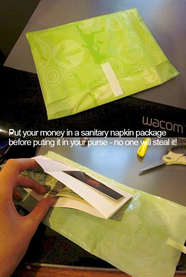 Ako žena viem, že väčšina ľudí sa nechce trápiť s hygienickou vložkou. Ľahko do nej schováte peniaze alebo iné dôležité dokumenty, len nech vám nikto nevezme kabelku!