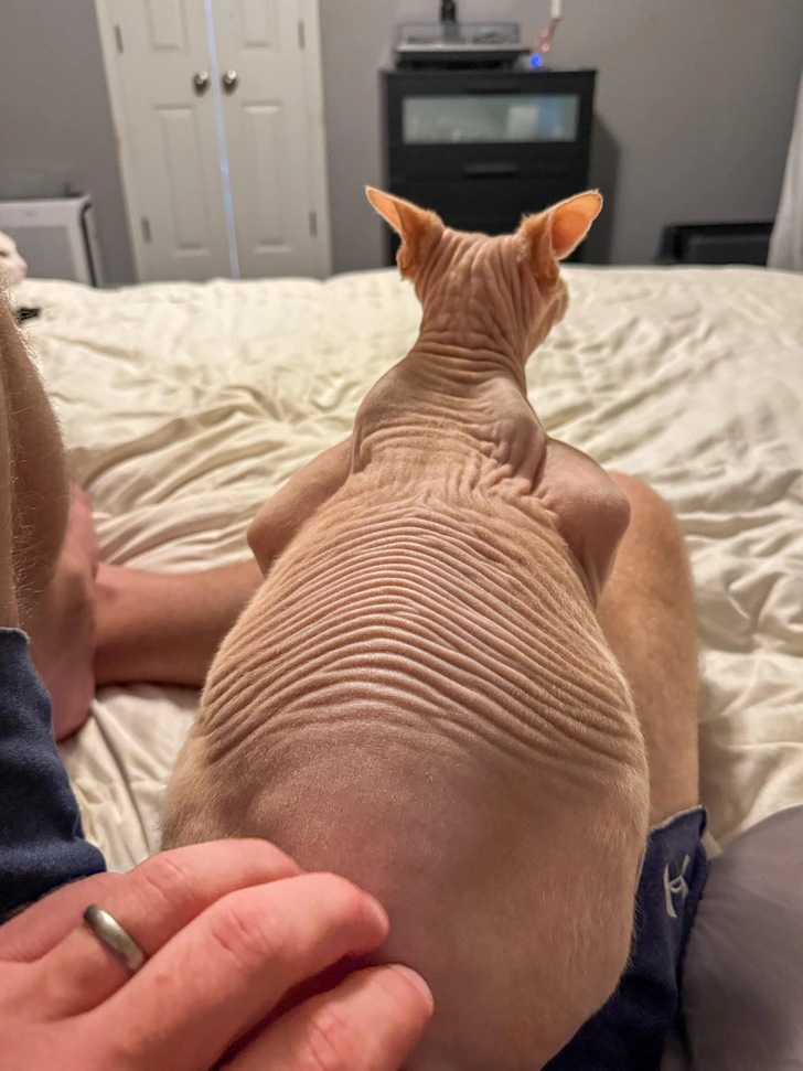 Moja mačka zvrašťuje chrbát vždy, keď ju hladkám! Nemá srsť