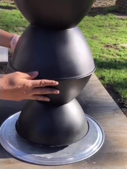 Pripevnením stolovej dosky k stojanu pomocou ďalšieho lepidla Meira označila svoj výtvor z obchodu za hotový! Na základe pripomienok niekoľkých znepokojených používateľov TikTokers Meira navrhuje vyplniť druhú misku odspodu niečím ťažkým, aby bol stôl menej náchylný na prevrátenie.