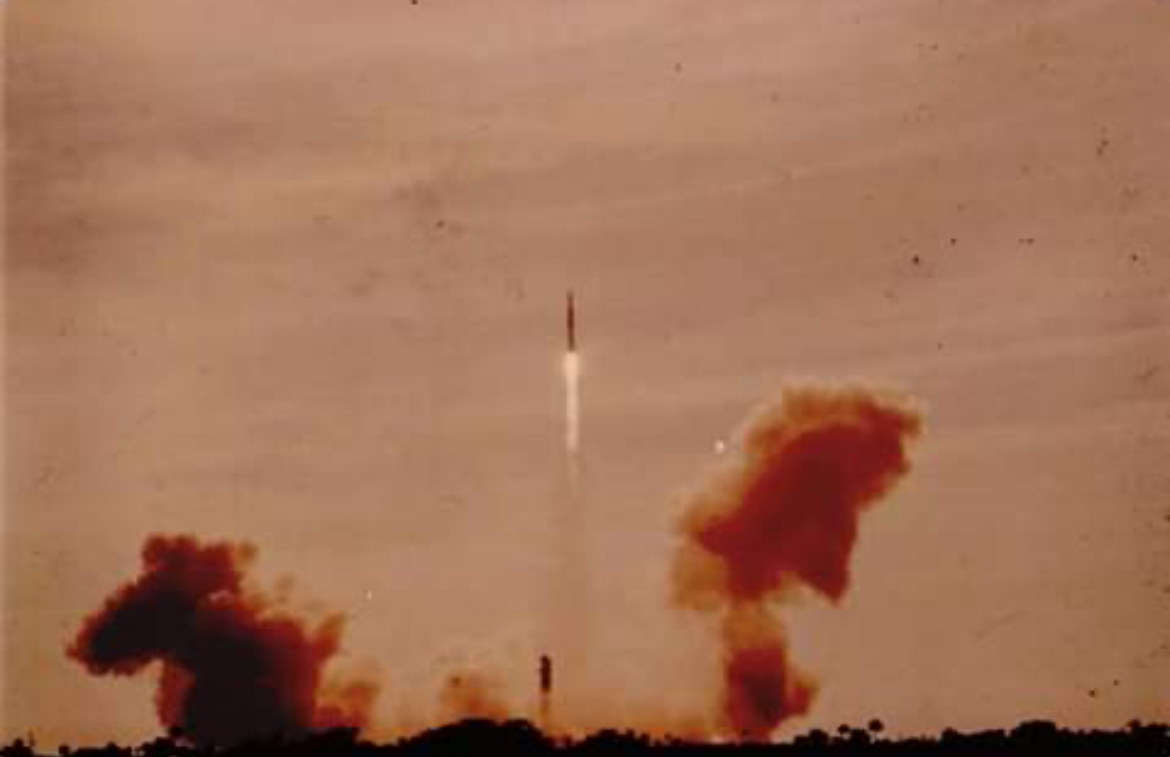 Raketa Saturn V nesúca Apollo 11 vyletí do neba za sledovania celého amerického národa a sveta.