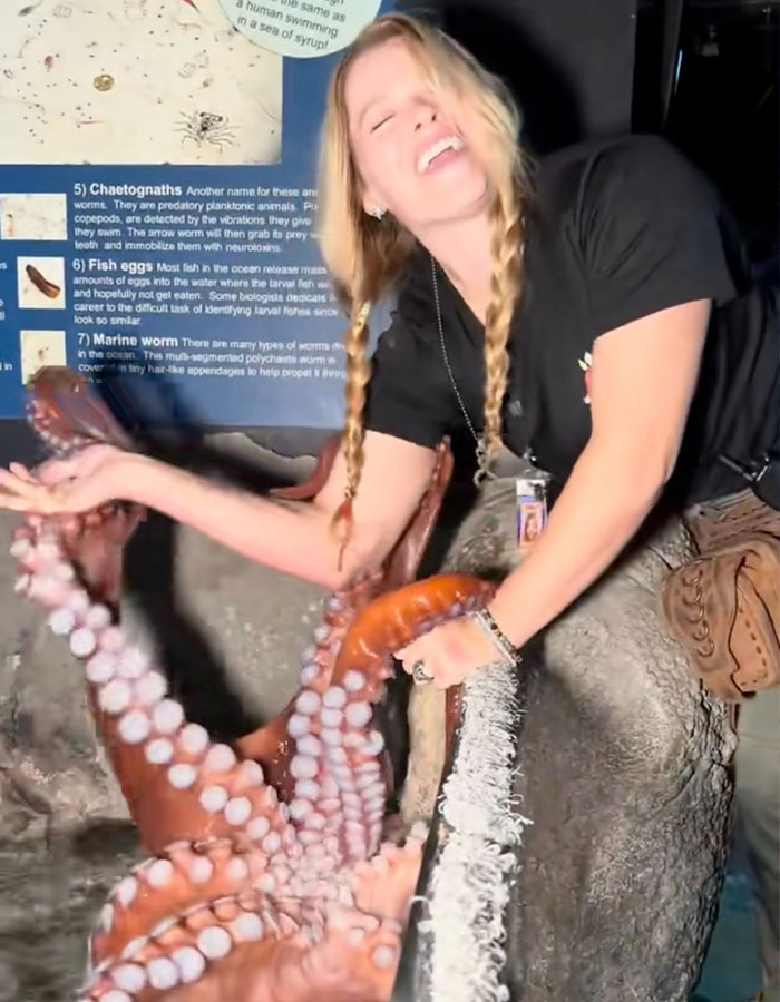 Hoci sa touto otázkou priamo nezaoberala, zamestnankyňa akvária zverejnila na TikToku video, v ktorom hovorila o chobotnici menom Cthulhu. „Sľubujem, že to nie je kozmické volanie o pomoc... modriny zmiznú do siedmich až 14 dní,“ povedal. „Nie sú škodlivé ani nič podobné.“