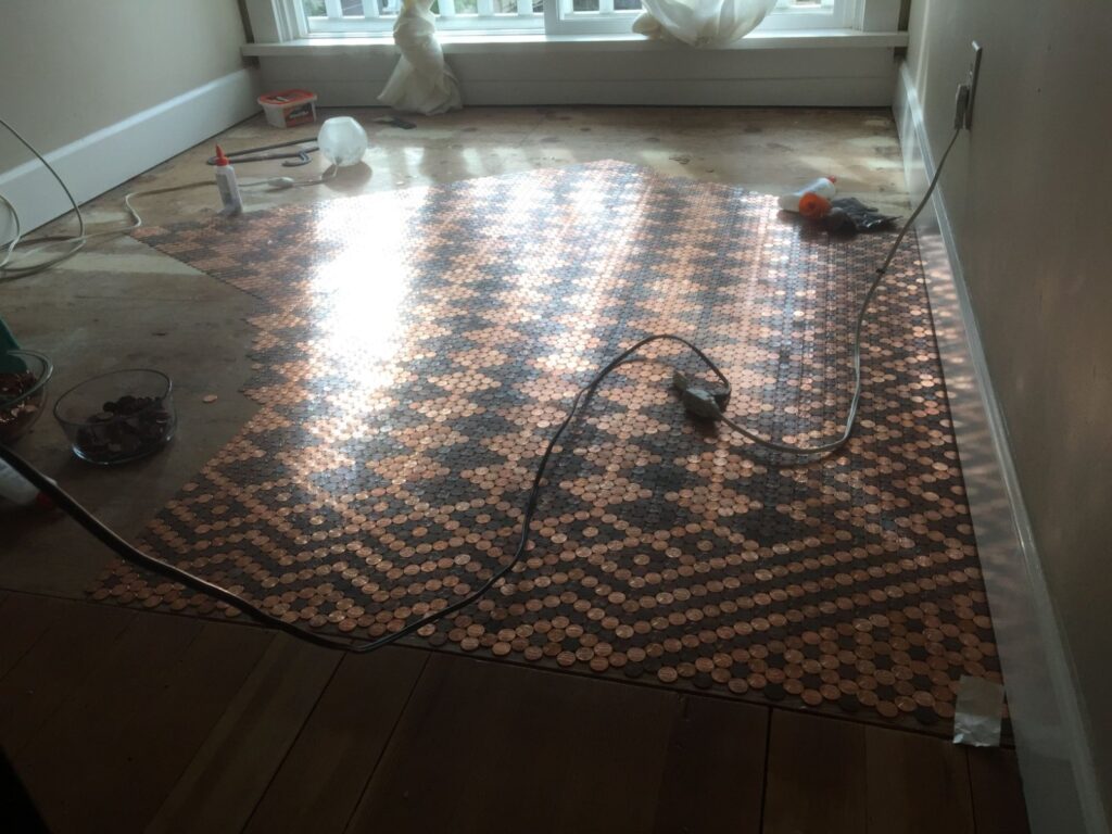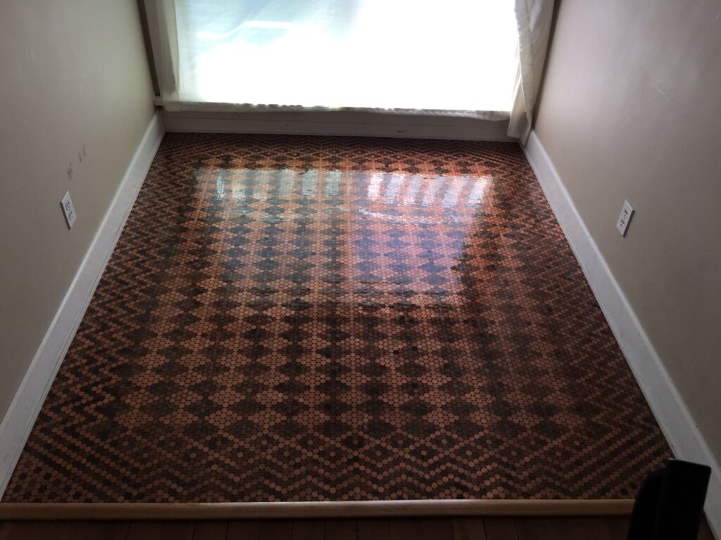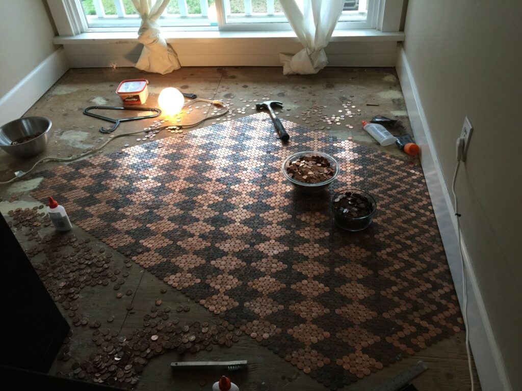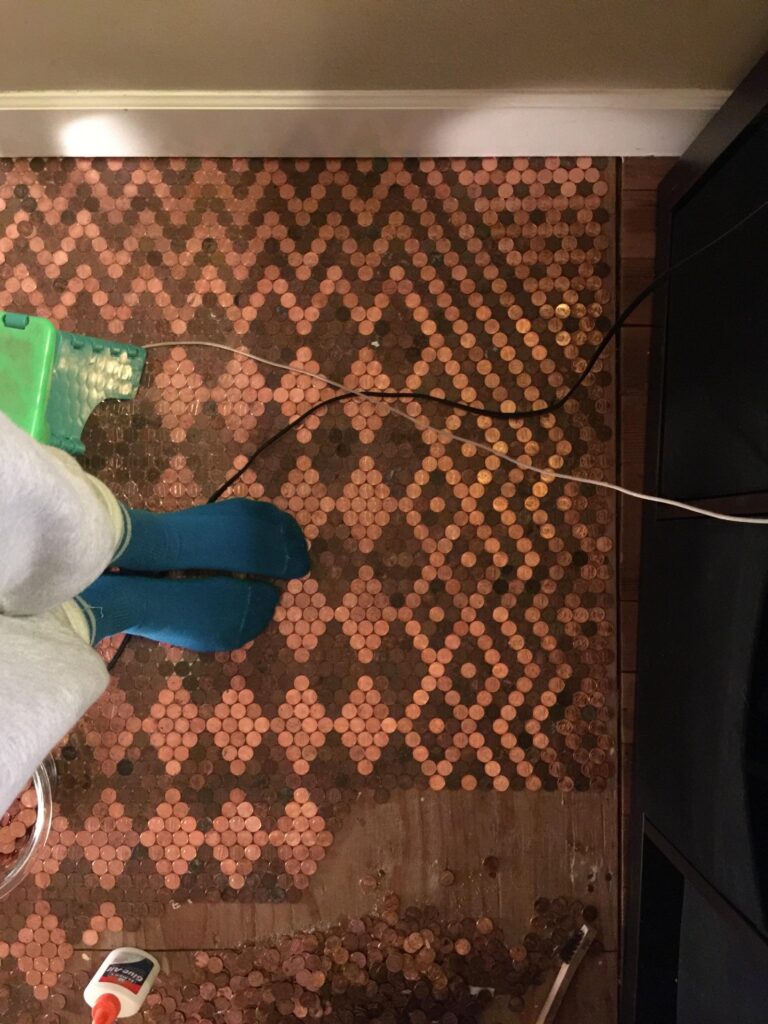 Nemôžem uveriť, že to bol domáci projekt „urob si sám“. Vyzerá to, akoby to robil profesionál. Urobila na vás táto centová podlaha taký dojem ako na mňa? Trochu strácam slová. Je to také ohromujúce a má to chladnú atmosféru 20. rokov minulého storočia.
