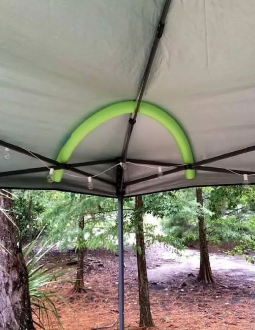 Tento trik s bazénovou nudľou zabraňuje hromadeniu vody v rohoch stanu s baldachýnom.