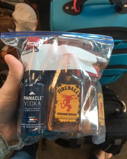 Fľaše s alkoholom sa považujú za tekutiny, ak si kúpite cestovné veľkosti a vložíte ich do príručnej tašky na tekutiny.