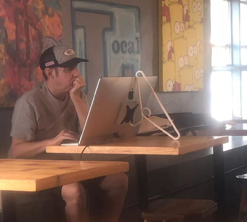 Budem predpokladať, že to bolo urobené ako vtip po oznámení tohto smiešne drahého produktu, pretože kto by nosil monitor za 4000 dolárov do kaviarne, ale v skutočnosti to funguje celkom dobre ako stojan.
