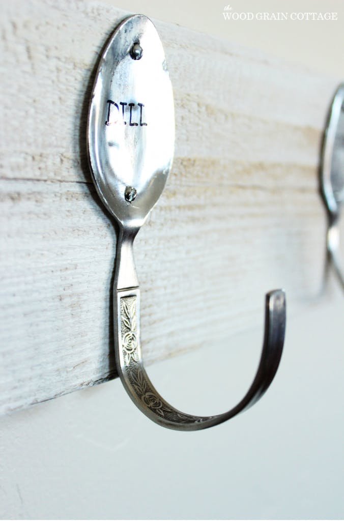 The Wood Grain Cottage ohla pár lyžičiek a pribila ich na drevenú dosku, aby vytvorila niekoľko háčikov.