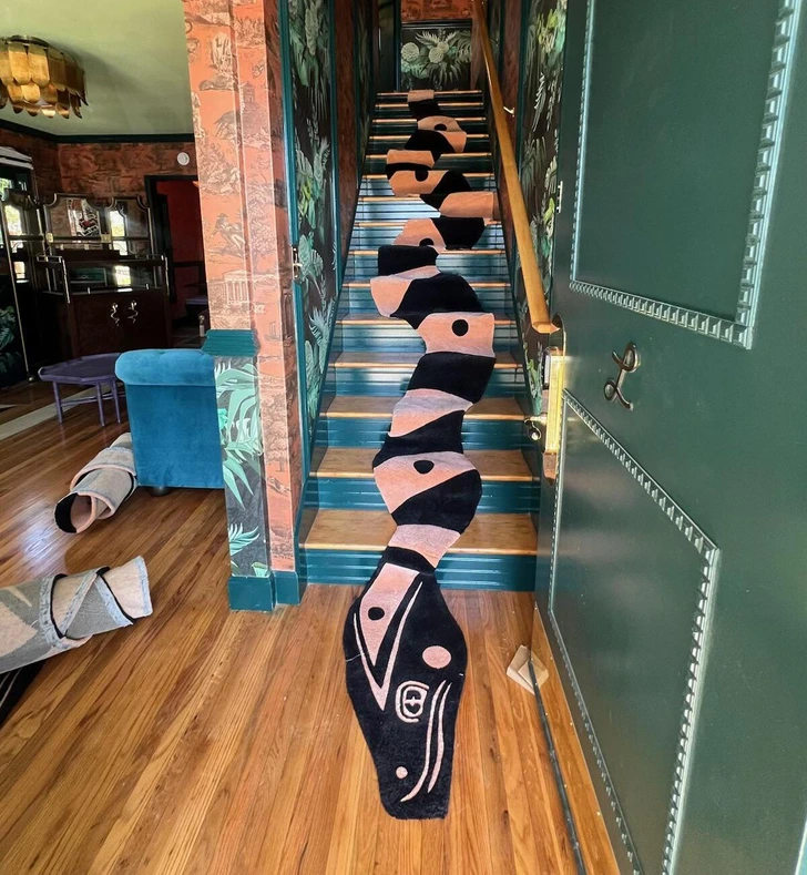 „Koberec na schody v tvare hada, ktorý som vyrobila!“