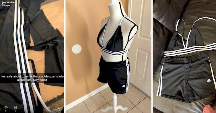 Ak ste ako ja, Adidas je všetko. Používateľka Twitteru @TytiaunaG premenila ošúchaný pár nohavíc Adidas na jedinečné dvojdielne nohavice, ktoré vyzerajú draho.