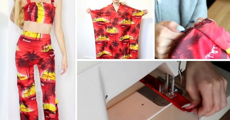 Mia Maplesová našla veľmi dlhé a široké šaty so vzorom, ktorý sa jej páčil, a tak prišla s nápadom na dvojdielne šaty. Takýto úlovok zo sekáču!
