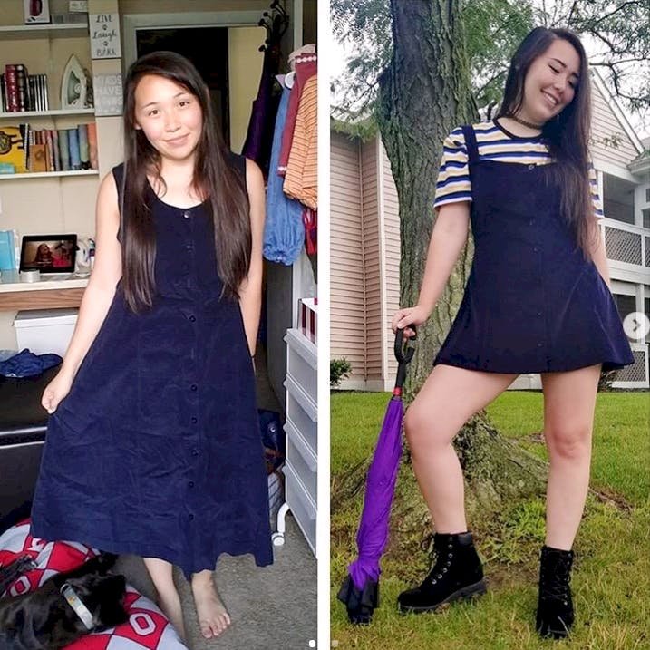 Naozaj si chceš obliecť tie dlhé šaty na gombíky? Nemajú tvar, takže asi nie. Instagramerka @belieubear ich skrátením a zmenou ramienok opäť urobila nositeľnými.