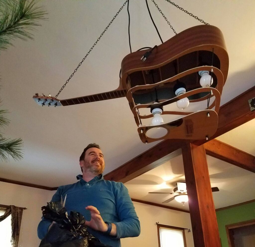 Je úžasné, čo kreatívni ľudia dokážu urobiť so starými hudobnými nástrojmi. Najprv polička na klavír a teraz toto staré gitarové svietidlo. Je to taký jedinečný nápad.