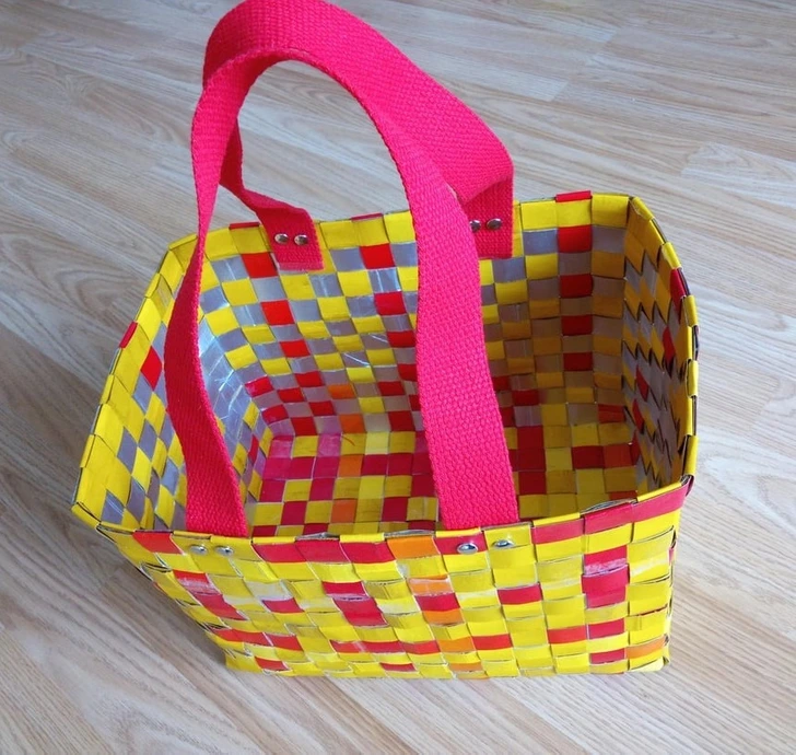 „Košík, ktorý som uplietla zo starých kartónov od mlieka a džúsu.“