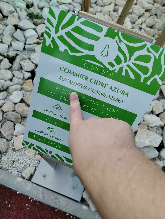 Braillovo písmo na tejto značke je plochý.. Nemôžete ho nahmatať prstami