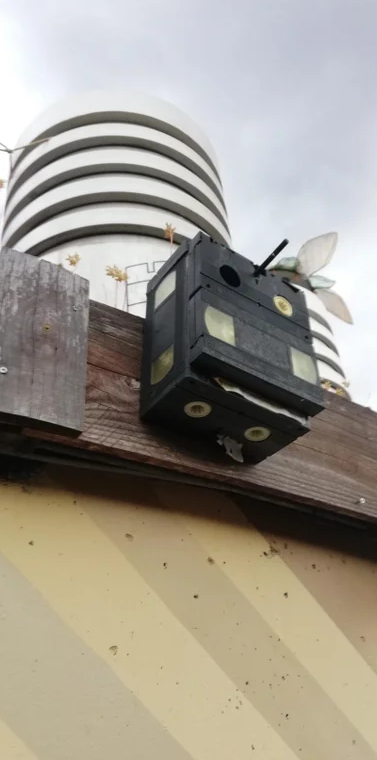 Niekomu sa tu povaľovala kopa starých kaziet VHS, tak sa rozhodol vyrobiť malú vtáčiu búdku.