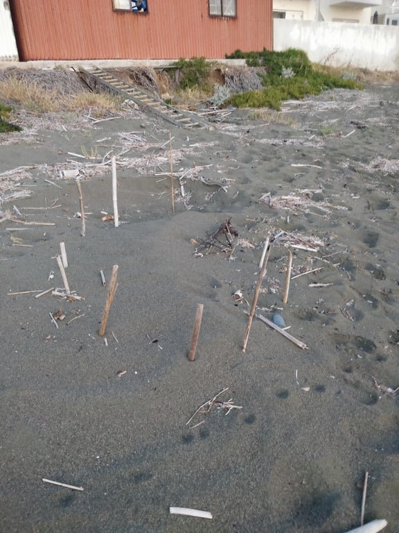 V tomto prípade tieto tyče obklopujú miesto, kde morská korytnačka nakladla vajcia, aby na ne ľudia náhodou nešliapli.