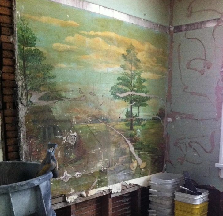 „Pastorálna scéna nad vaňou, ktorá bola odhalená počas rekonštrukcie.“