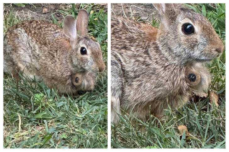Zajac na dvore s týmto podivným výrastkom. Myslel som si, že to môže byť nejaký hmyz, ale za krátku dobu sa to nezmenilo