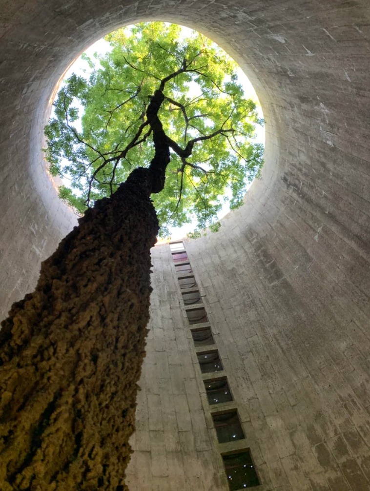 „Pri prieskume som našiel tento krásny strom rastúci vo vnútri opusteného sila.“