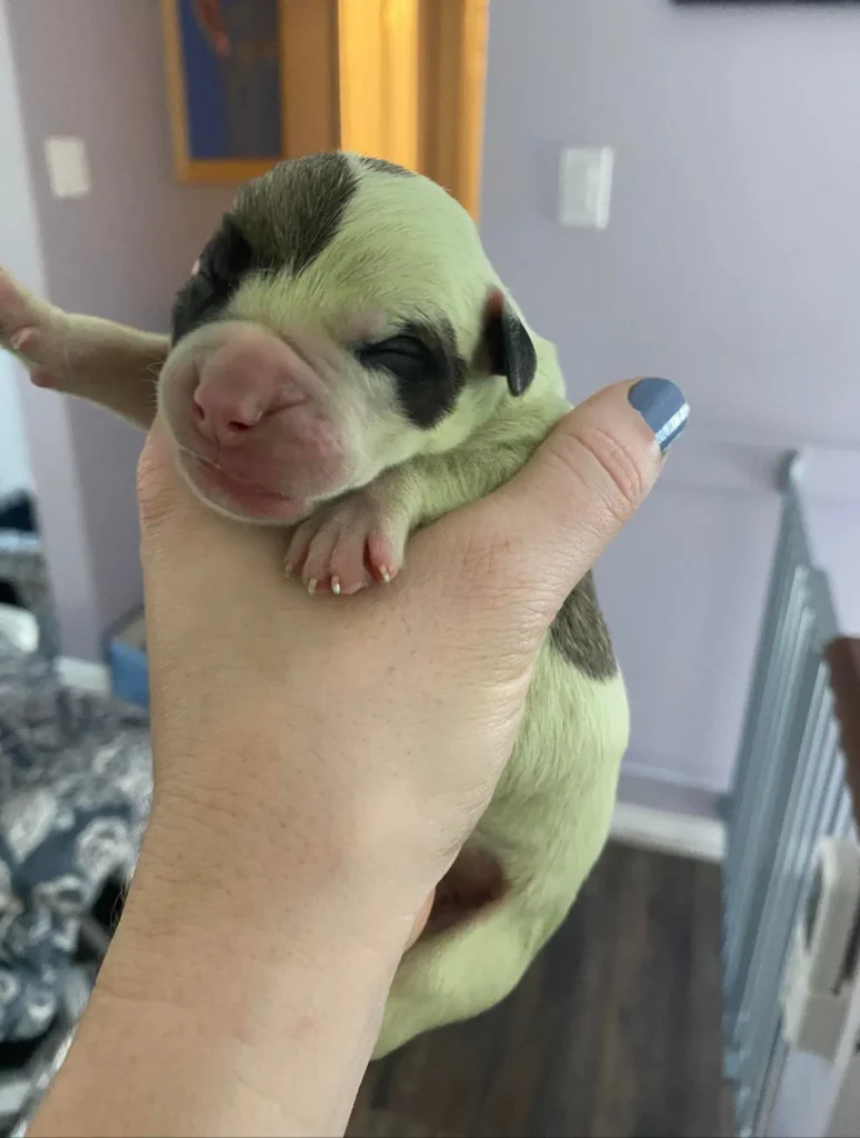 Ľudia hlásili, že všetkých sedem sa narodilo zdravých, ale už teraz vidíme, že jedno z nich sa od ostatných odlišuje. To platilo aj v čase, keď sa to šteniatko narodilo, čo majiteľov Trevora Moshera a Audru Rhysovú znepokojilo, že je v ohrození.