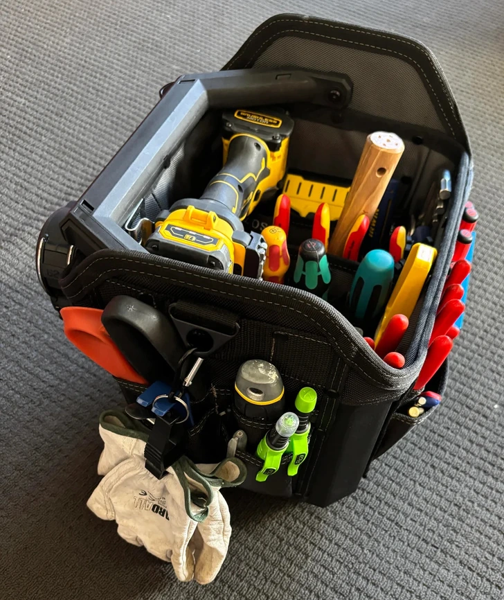 „To je moja luxusná taška na náradie – zmestí sa do nej všetko.“