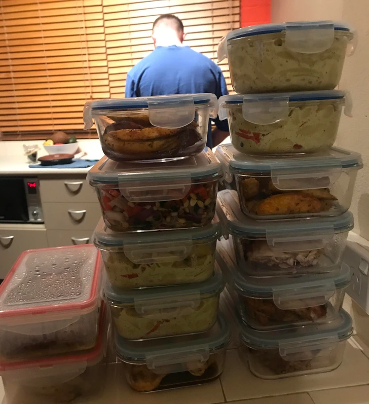 „Môj partner a ja pracujeme na zmeny, už rok si pripravujeme jedlo dopredu. Sklenené nádoby sú skutočnou revolúciou! Toto je jedlo na celý týždeň.“