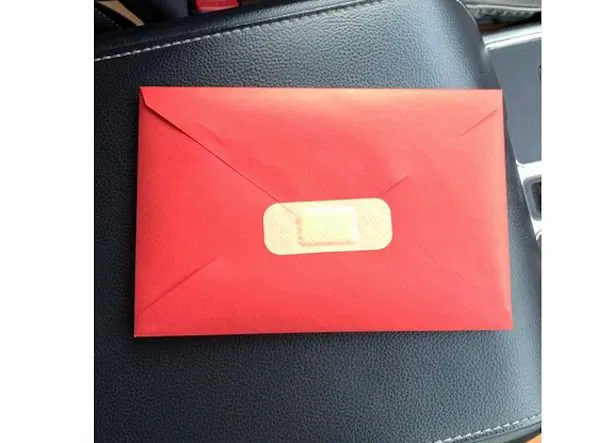 „Požiadala som manžela, aby zalepil obálku na poštové zaslanie.“ Hmm, nemyslím si, že by tu stačila stará dobrá slina. Zaujímalo by ma, čo si o tom pomyslí osoba, ktorá túto pohľadnicu dostane, lol. Mohol použiť lepiacu pásku namiesto náplasti.