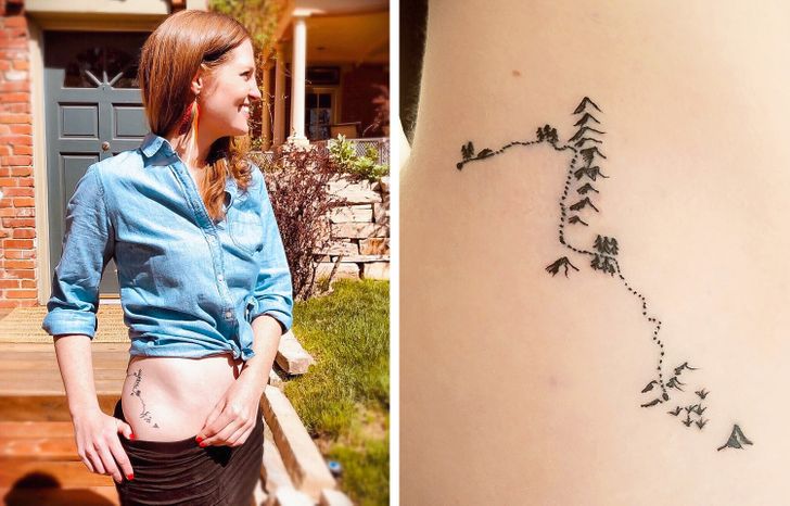 “Po väčšinu svojho života som posadnutá Pánom prsteňov .” Tetovanie sleduje časť stopy, po ktorej spoločne cestujú Frodo a Aragorn. Boli sme s priateľom veľmi zamilovaní, podporoval ma a dal mi viac, ako som považovala za možné. Ale rovnako ako Frodo a Aragorn, aj tu bol čas ísť vlastnou cestou. Nie preto, že by sme sa prestali milovať, ale preto, že sme obaja mali rôzne cesty, po ktorých by sme mohli kráčať. Som veľmi šťastná, že som mohla zažiť takú hlbokú lásku, aj keď to znamenalo bolestivý koniec. Ďalej k ďalšej kapitole.“