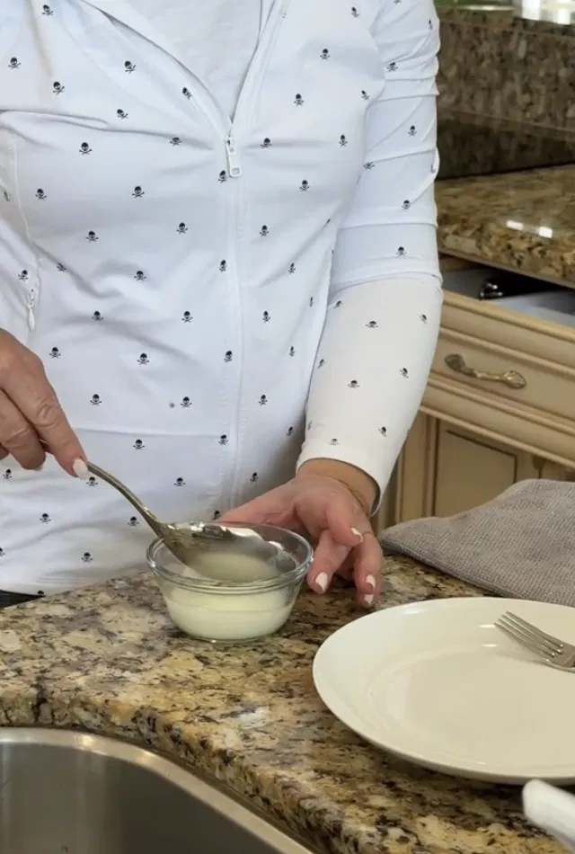 Môžete použiť malú misku Tupperware alebo aj malú misku na miešanie, ak ju máte. Potom rozbijte vajce priamo do misy – zatiaľ je to jednoduché, však? Ďalej pridajte trochu vody. Nemusí byť veľa, ale podľa Danynej mamy stačí toľko, aby zakryla žĺtok.