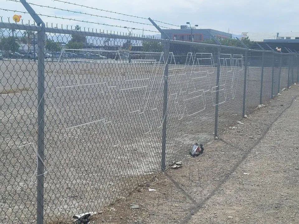 „Graffiti vytvorené pomocou šnúrky na plote z drôtených ok v Las Vegas.“