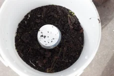 Ak sa vaše vedrá dotýkajú na dne a nezostáva žiadny priestor, umiestnite do stredu spodného vedra obrátený plastový pohárik od jogurtu alebo kúsok dreva. Tento priestor je absolútne nevyhnutný, pretože tam bude odtekať prebytočná tekutina. (obrázok 6).