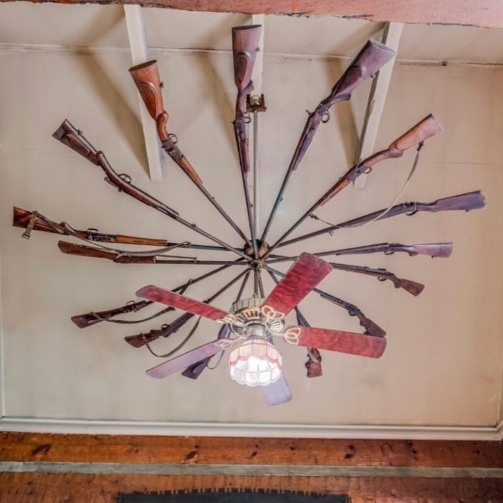 Túžili ste niekedy pozerať sa na strop plný zbraní? Ja tiež nie. Môžem len povedať, že dúfam, že žiadna z nich nie je nabitá.