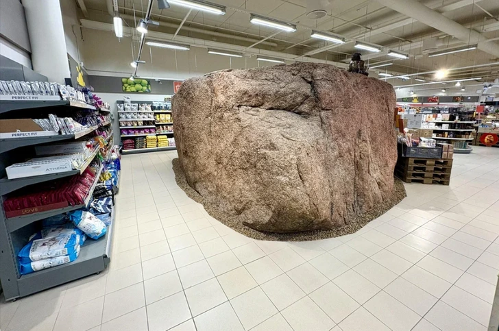 „10 000 – 12 000 rokov starý ľadovcový balvan v bežnom supermarkete v Estónsku.“