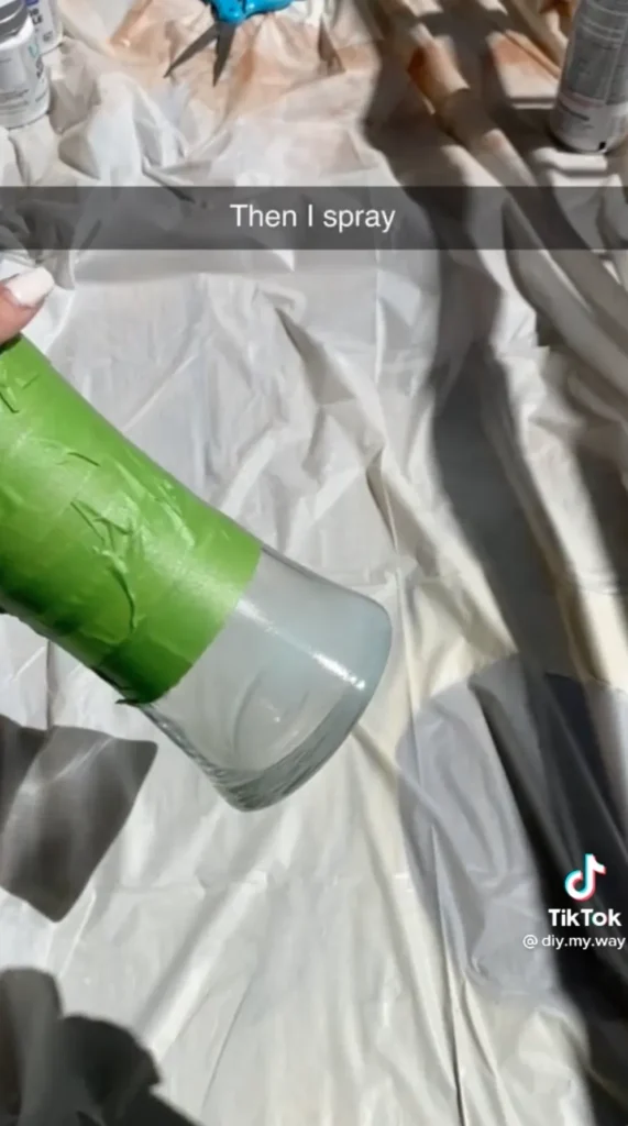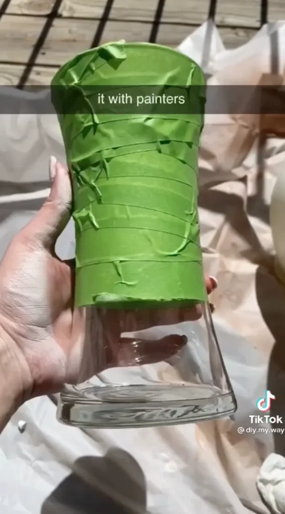 Na tento projekt budete potrebovať len úplné základy. Zoberte si sklenenú vázu, maliarsku pásku a sprejovú farbu podľa vlastného výberu. Odporúčam tiež základný náter a tesniaci prostriedok.
