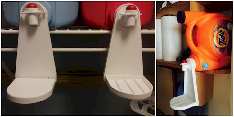 Tieto obrovské fľaše s pracím prostriedkom sú často najvýhodnejšie, ale ich výlevky sú známe tým, že z nich kvapká. Táto malá pomôcka zachytáva kvapky a poskytuje vám miesto na odloženie pohára s pracím prostriedkom.