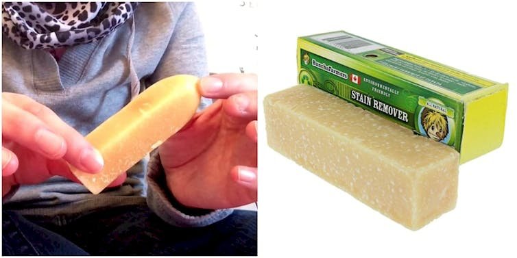 Mnohé prípravky na predúpravu sú plné chemikálií alebo sú naozaj drahé. Namiesto toho vyskúšajte prírodnú možnosť, ako je napríklad tyčinka na odstraňovanie škvŕn Buncha Farmers . Stačí ju rozotrieť na škvrnu s trochou horúcej vody a vyčistí takmer všetko.