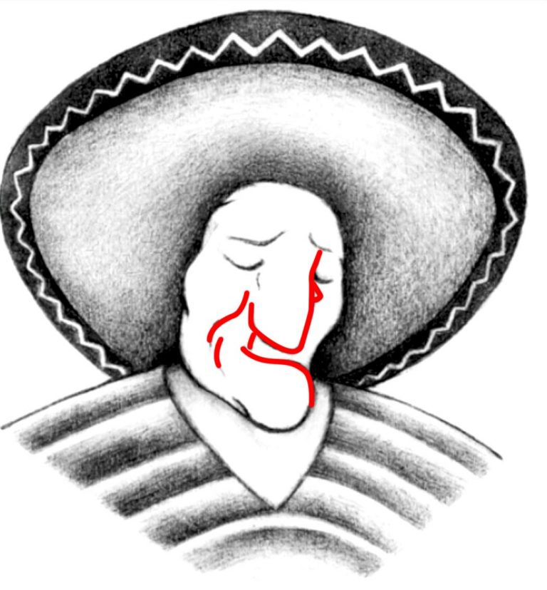 Mladá žena, ktorá sa ukrýva v tvári starého smutného Mexičana nám v redakcii dala riadne zabrať, kým sme ju našli. Slečne je vidieť profil tváre, krk a rameno. To všetko je ukryté v nose a brade Mexičana.