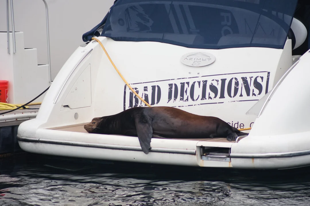 Zlé rozhodnutia – nápis na lodi. Asi si to neuvedomuje