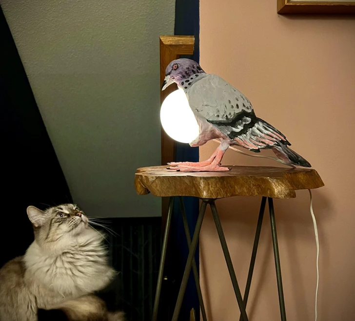 Vyrobila som lampu v tvare holuba. Moja mačka si už robí zálusk