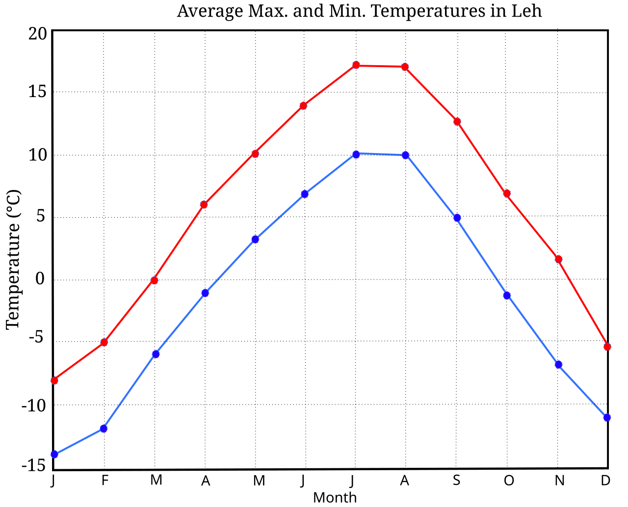 Klíma v Ladaku je mimoriadne suchá a zároveň mrazivá. Zrážok je minimum, prevažne v podobe snehu. Jasná obloha, silné slnko a nočné mrazy sú tu bežné. Kombinácia riedkeho vzduchu, rýchlej straty tepla a silného vetra vytvára extrémne, no unikátne púštne podmienky.