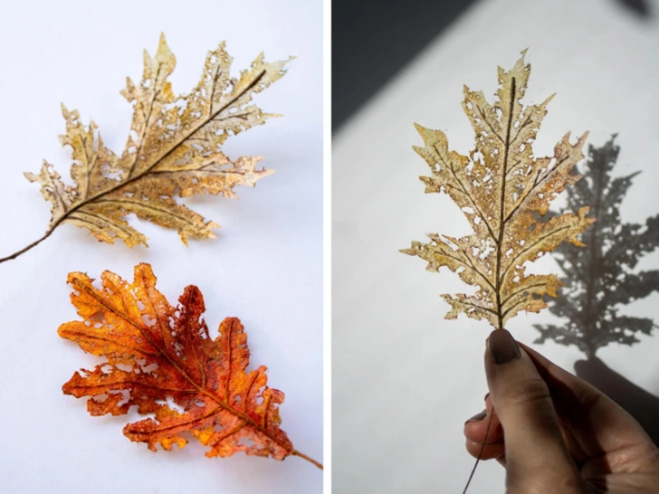 Tieto dubové listy som vytvorila z drôtu, látky a ručne farbených nití.