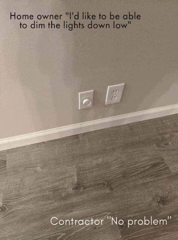 Nastavovanie jasu elektrikár umiestnil dole k zásuvkám. Takže, ak chceme upraviť jas, musíme sa zohnúť na zem.