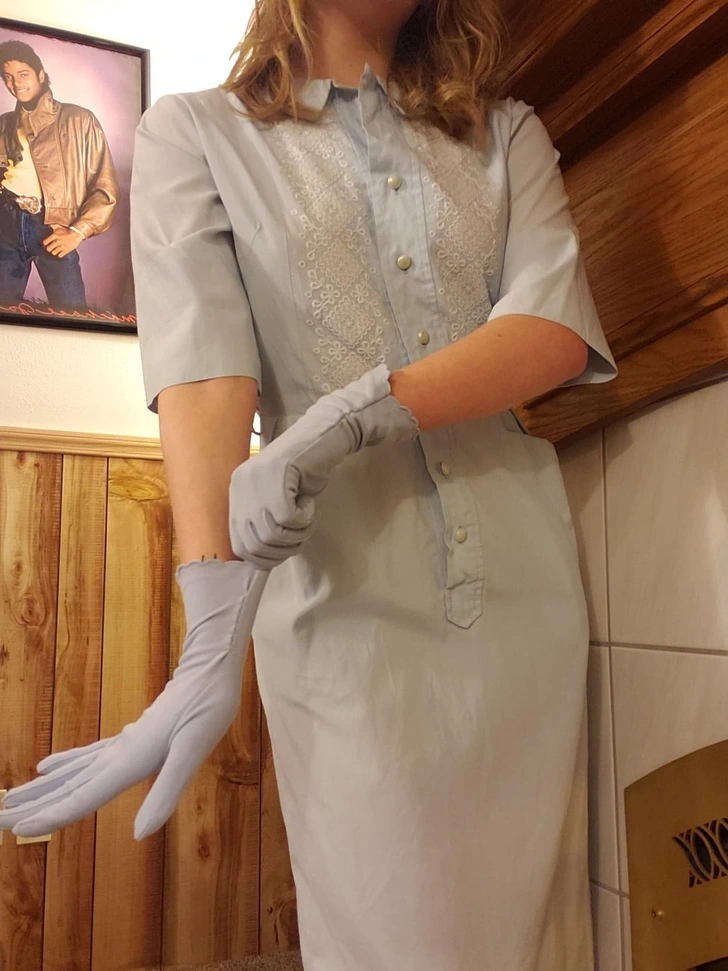 Našla som šaty z 50. rokov a perfektne sa hodili k vintage rukaviciam zo 40. rokov.