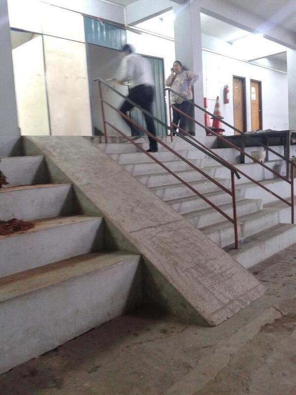 Rampa pre invalidné vozíky, ktorá vyzerá ako skokanský mostík, naznačuje, že hybnosť bola súčasťou dizajnu.
