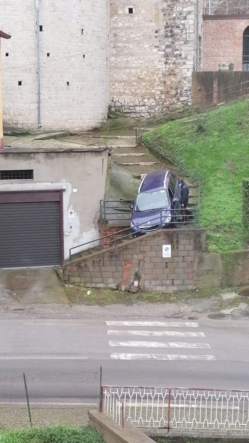 Auto sa zrútilo zo schodov kvôli nesprávnemu parkovaniu.