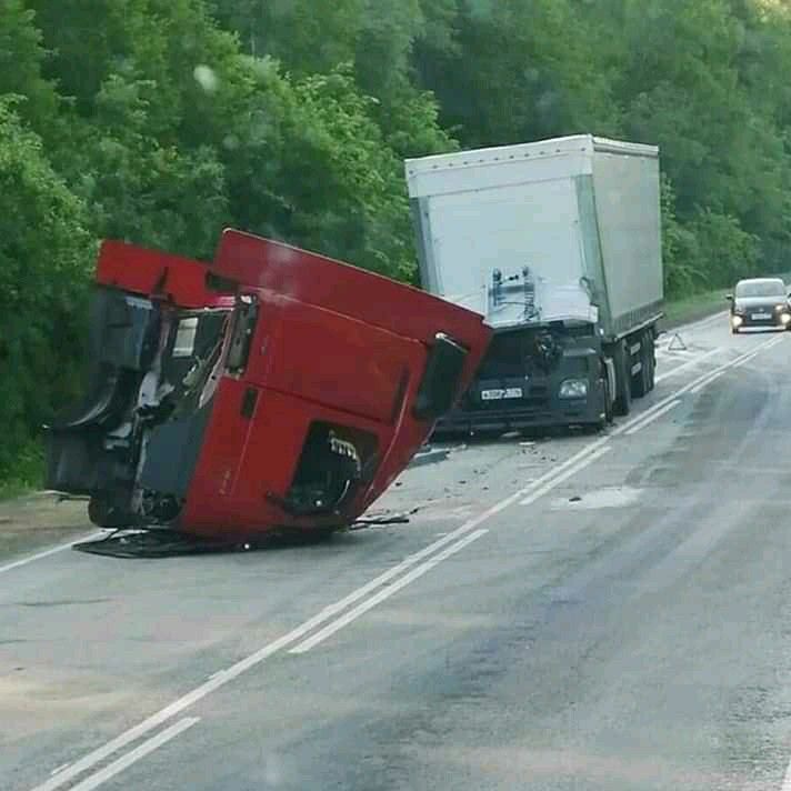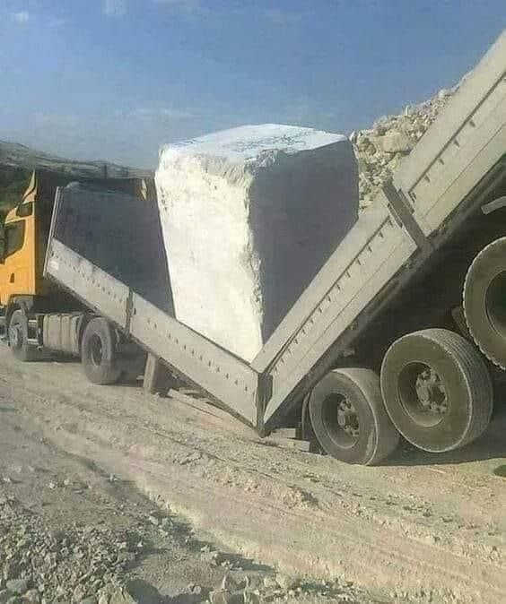 Masívny biely blok úplne rozdelil nákladné auto na dve časti. Dávajte si pozor na svoj náklad.