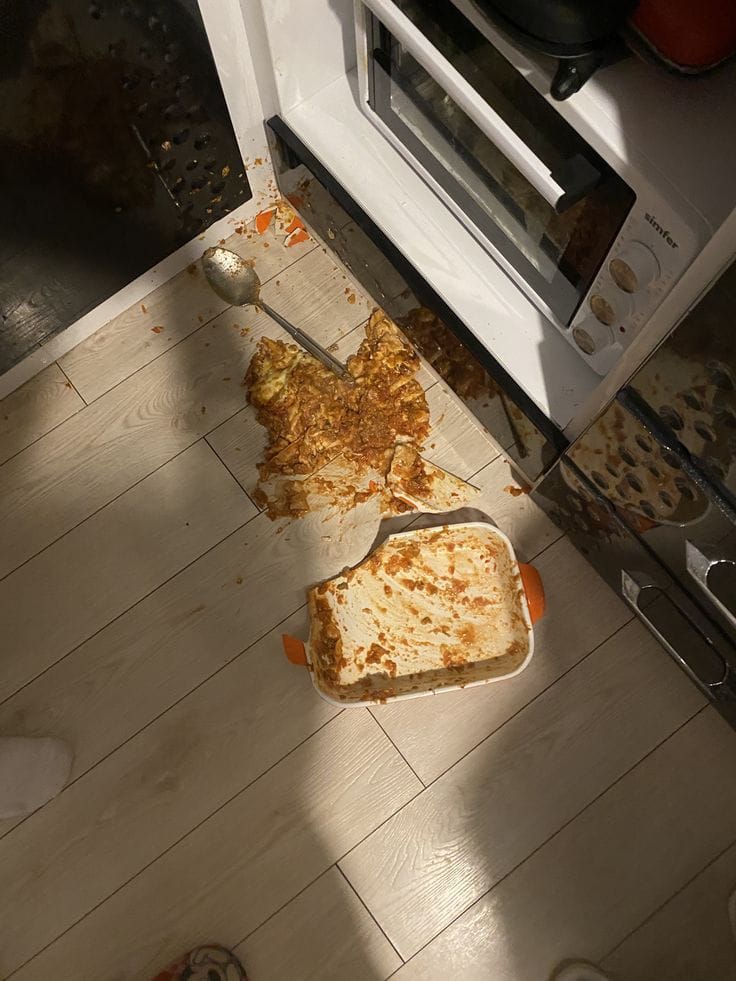Celé lasagne boli zničené kvôli nešikovným rukám.