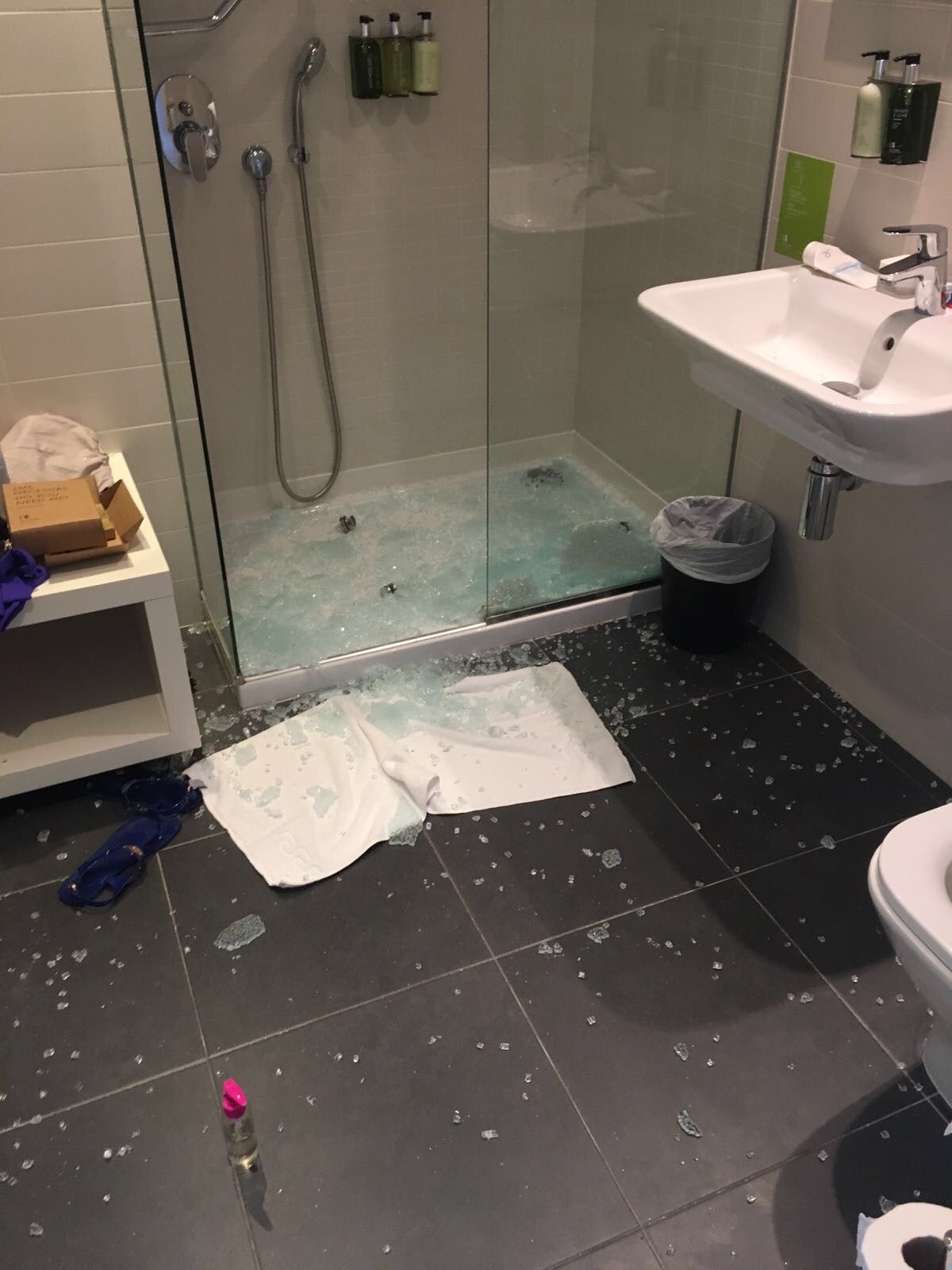 Dvere do sprchy sa rozbili a spôsobili okamžitý chaos.