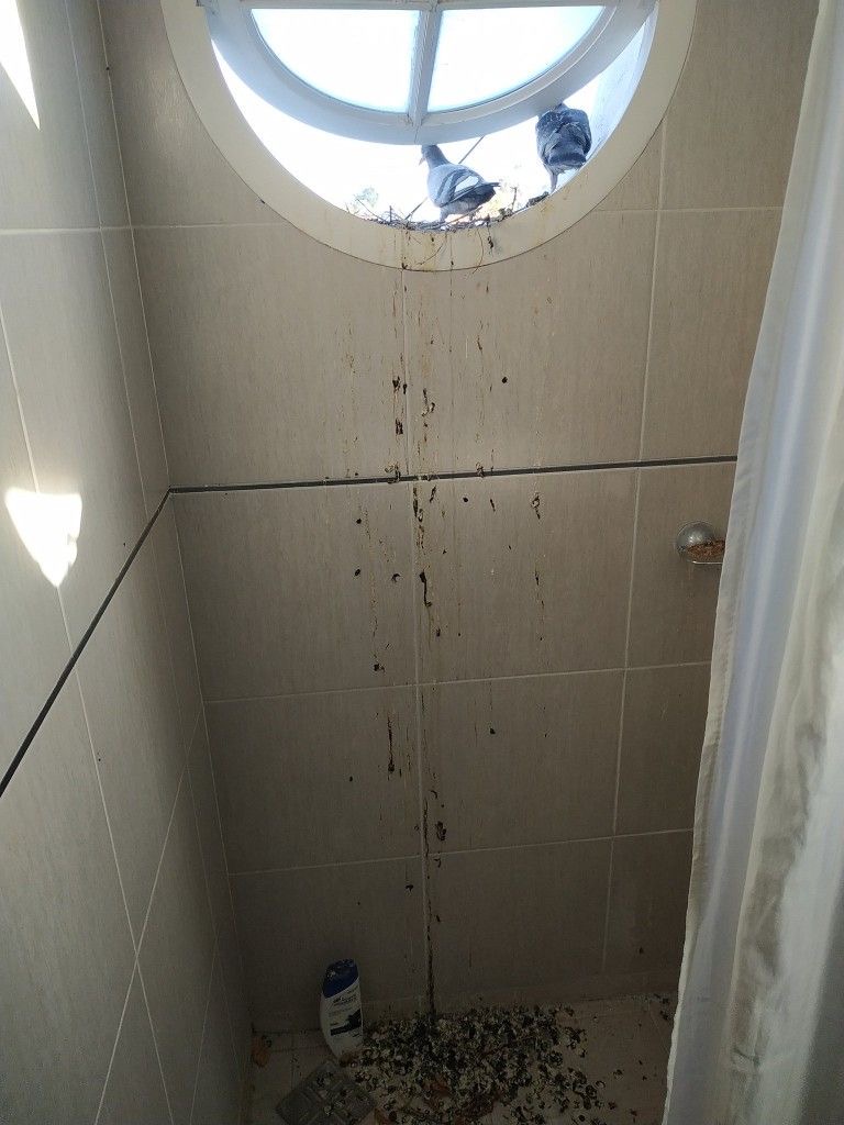 Holuby sa rozhodli, že kúpeľňa je ideálne miesto na nečakanú návštevu.